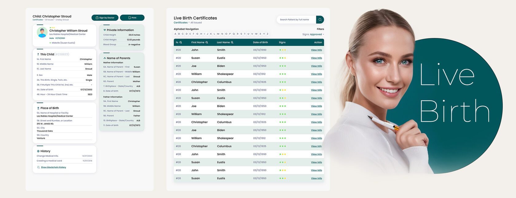 Онлайн-система регистрации свидетельств на блокчейне для сети больниц.